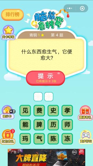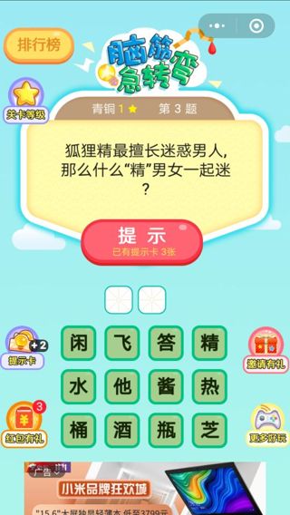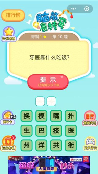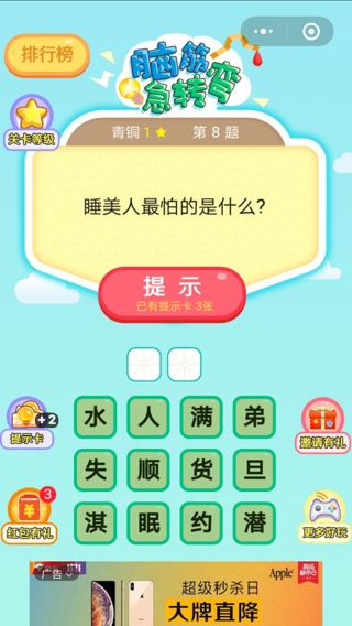 微信小腦筋答案第1-10關(guān)_微信小程序小腦筋攻略第1-10關(guān)