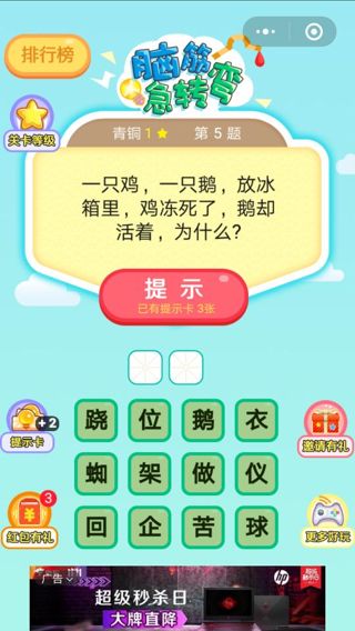 第5關(guān)問題:一只雞一只鵝放冰箱里雞凍死了鵝卻活著為什么