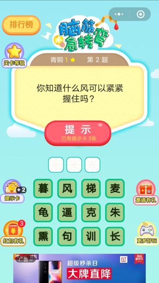第2關(guān)問題:你知道什么風(fēng)可以緊緊握住嗎