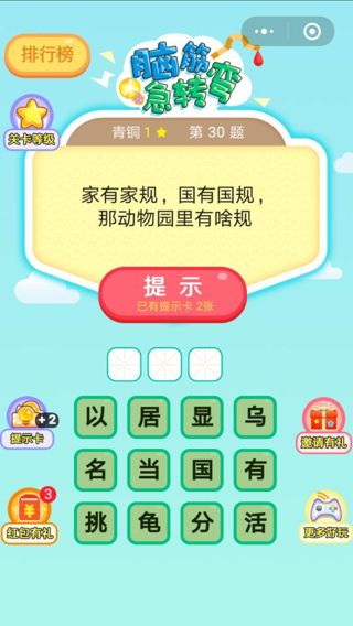 微信小腦筋答案第21-30關(guān)_微信小程序小腦筋攻略第21-30關(guān)