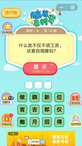 微信小腦筋答案第11-20關_微信小程序小腦筋攻略第11-20關