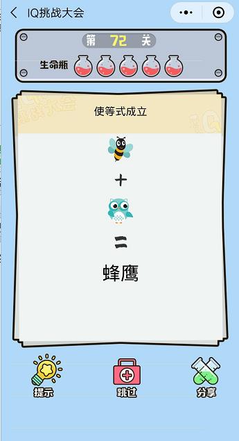 微信IQ挑戰大會答案第71-80關_微信小程序IQ挑戰大會攻略第71-80關