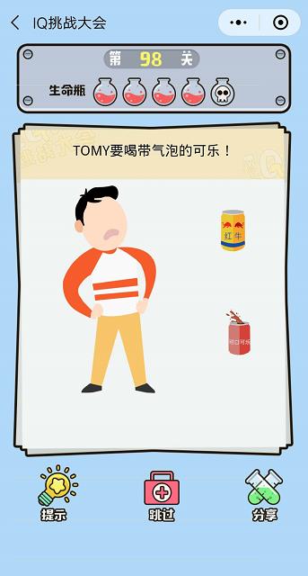 答案:搖晃題目中的可樂(lè),灑出來(lái)之后放在他嘴里