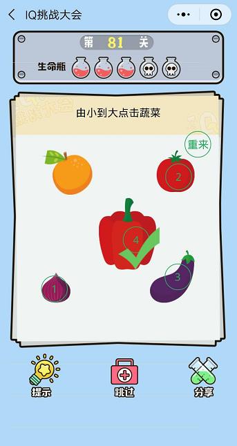 由小到大點(diǎn)擊蔬菜