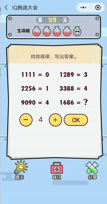 微信IQ挑戰(zhàn)大會(huì)第59關(guān)【找找規(guī)律寫出答案】答案攻略