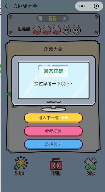 微信IQ挑戰(zhàn)大會第66關(guān)【殺死大象】答案攻略