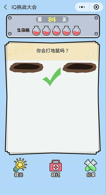 微信IQ挑戰大會第84關【你會打地鼠嗎】答案攻略