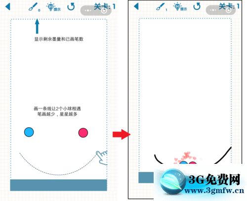 畫(huà)一條線條或者圓圈,讓兩個(gè)小球碰撞在一起,讓它們相遇“相愛(ài)”。