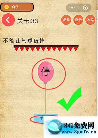 不能讓氣球破掉是微信小程序《最強燒腦游戲腦力吃雞大作戰(zhàn)》游戲第33關(guān)的問題,很多玩家還知道答案是什么,下面小編為大家?guī)砦⑿抛顝姛X游戲腦力吃雞大作戰(zhàn)第33關(guān)攻略。問題:不能讓氣球破掉。
