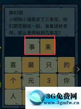 小明和小涵各買了三束花,他們把花捆在一起,準(zhǔn)備送給老師,那么老師收到幾束花是微信小程序《腦筋急轉(zhuǎn)彎大亂斗》游戲第82關(guān)的問題,很多玩家還知道答案是什么,下面小編為大家?guī)砦⑿拍X筋急轉(zhuǎn)彎大亂斗第82關(guān)攻略。