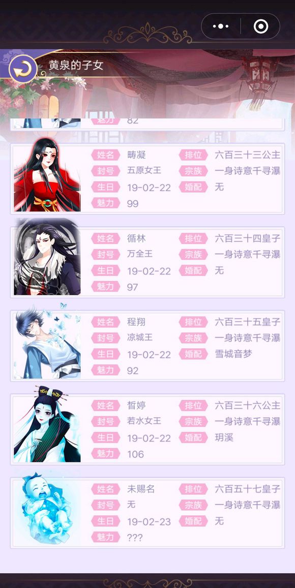 接下來,我們要看娃的反應。如圖,點擊美人事宜,出現自家妃子信息的這個界面,再點擊后代,找到剛出生的那只娃,點進去,我的這個娃反應就是扯頭發。