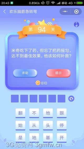 “米奇吃下了藥,但忘了把藥搖勻,達不到最佳效果,他該如何補救?”是微信小程序《歡樂腦筋急轉彎》第94關的問題,很多玩家不知道答案是什么?為了讓大家順利過關,小編為你帶來了微信歡樂腦筋急轉彎第94關答案。題目:米奇吃下了藥,但忘了把藥搖勻,達不到最佳效果,他該如何補救?