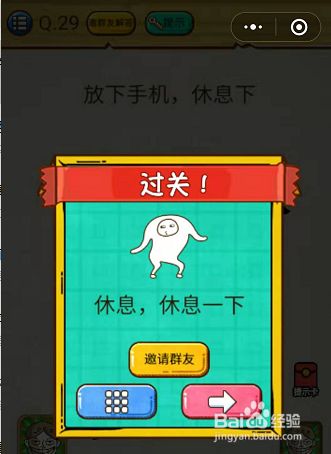 放下手機休息下是微信小程序《史上最強的大腦2》第29關(guān)的問題,很多玩家還不知道答案是什么,接下來小編為你帶來微信史上最強的大腦2第29關(guān)攻略。問題:放下手機休息下。
