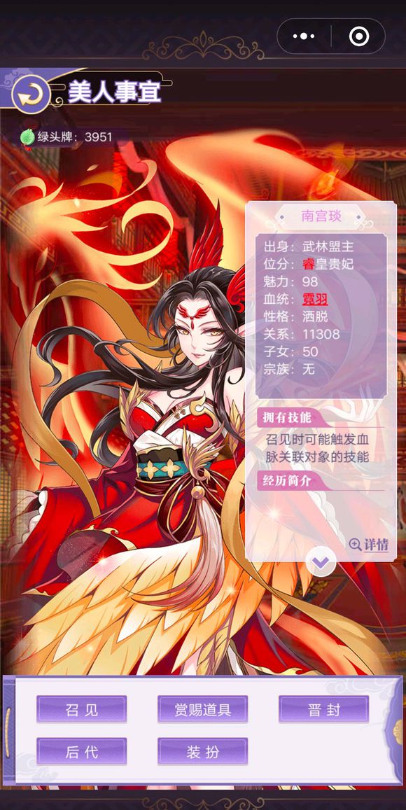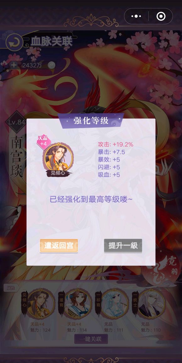 接上,如圖,這是今天生的120+魅力的娃,初始魅力118加6等于124,我家南宮生了五十個才出來這么一個天命之子。