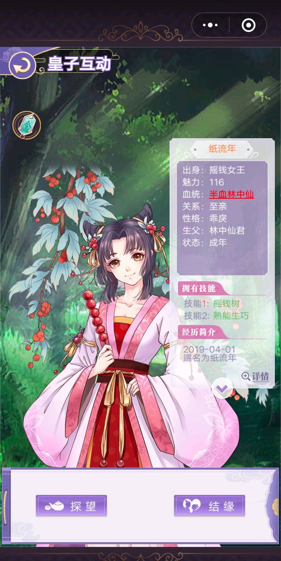 按照上面的方法,花了很多速成丹,綠頭牌,溫情酒,以及一個金鑲玉吊墜,在連續生了七八十個娃之后又出了一個天命之子,可惜的是初始魅力剛好110加6等于116,沒有超過120魅力,主要是初始魅力太低,如圖:
