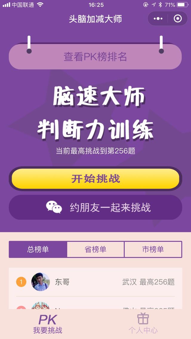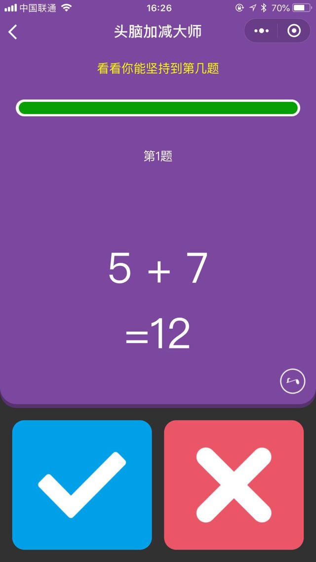 【微信頭腦加減大師二維碼】【微信小程序頭腦加減大師介紹】簡單的加減乘除竟然能考驗人的注意力,看看你能挑戰多少關。小程序類別:游戲開發者:武漢市洪山區興欣吉拉網絡工程技術工作室