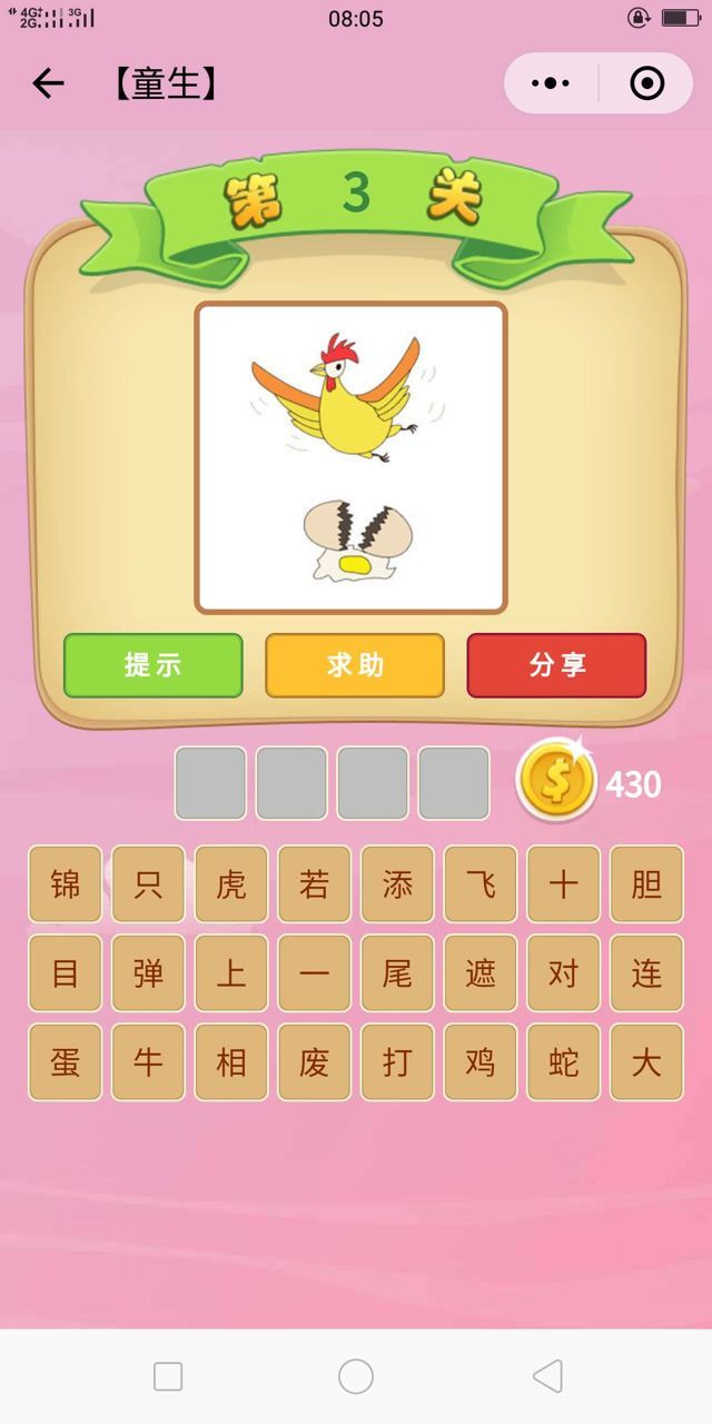 看圖猜成語,好玩還能學知識!小程序類別:游戲開發者:盤錦藝游網絡科技有限公司掃碼體驗小程序