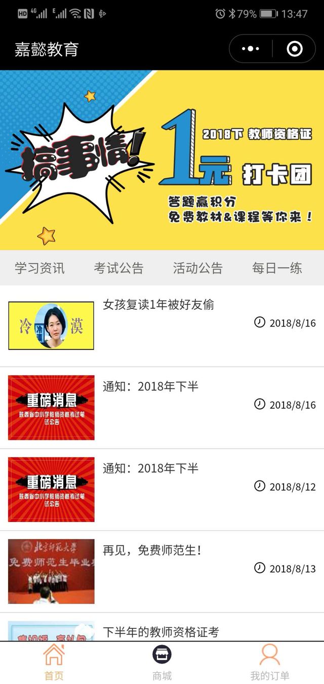 一站式教師資格證資訊、商城小程序類別:教育開發者:嘉懿教育掃碼體驗小程序
