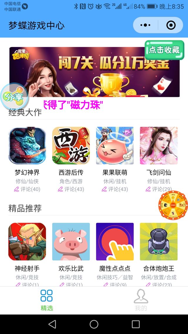 掃碼體驗小程序夢蝶游戲中心是一款超良心的游戲盒子! 小編一直在尋找與收錄優質的游戲!歡迎關注!小程序類別:游戲開發者:福州仙緣互娛網絡科技有限公司