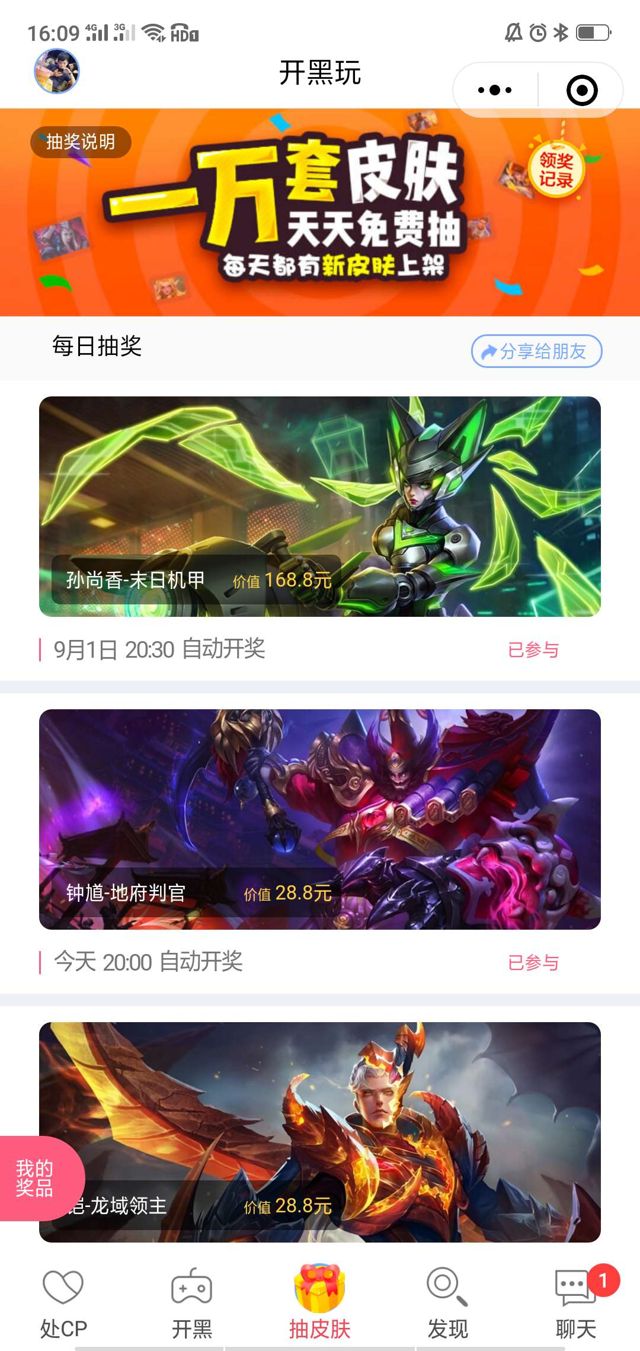 開黑玩一個可以開黑找小伙伴、抽英雄皮膚的小程序小程序類別:社交開發者:廣州一九一八網絡科技有限公司掃碼體驗小程序