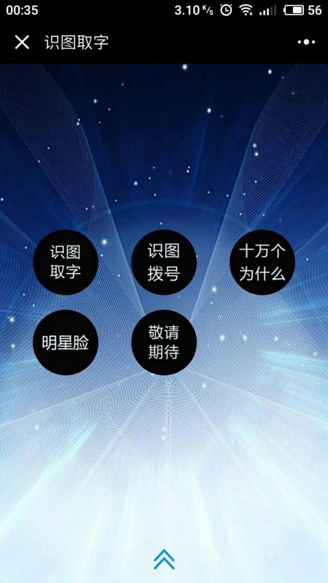 掃碼體驗小程序【識圖取字】 1. 實現從圖片快速識別取出文字。 2. 實現從拍照提取電話號碼,一鍵撥打,不再手動輸入電話號碼。 3. 識別圖片上的明星是誰。 4. 評估我跟哪個明星撞臉。 5. 十萬個為什么的科普。小程序類別:圖片攝影開發者:個人