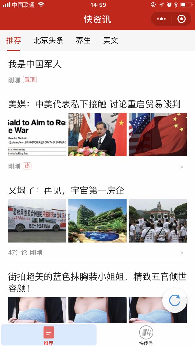 快資訊是一款基于大數據進行個性化推薦的全資訊類內容平臺,熱門資訊實時到達,智能分析你的興趣愛好,為你推薦感興趣的內容。小程序類別:內容資訊開發者:上海億之唐信息服務有限公司掃碼體驗小程序