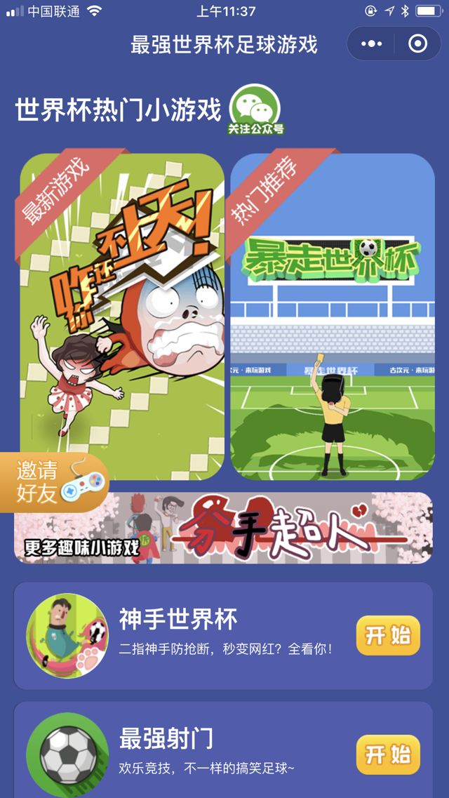掃碼體驗小程序2018俄羅斯世界杯,讓我們嗨翻一夏!最強世界杯足球小游戲集錦,啤酒、足球、游戲,你準備好了嗎?小程序類別:游戲開發者:來玩游戲小程序截圖
