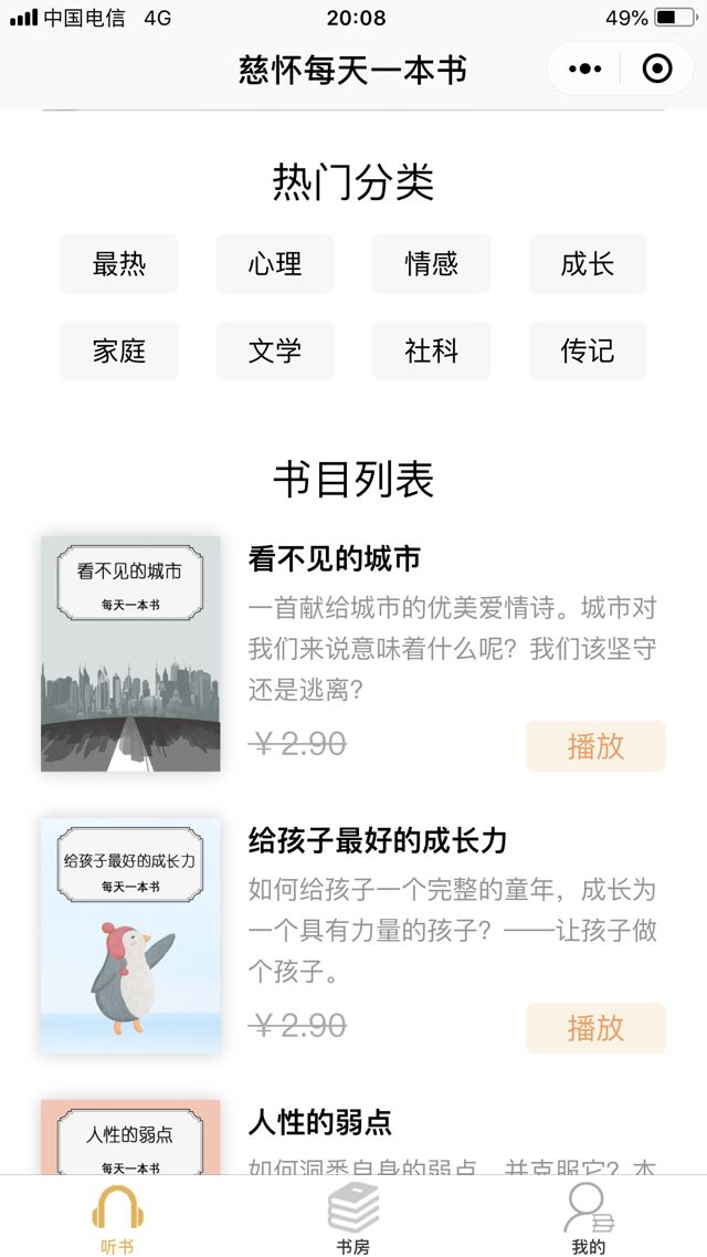 掃碼體驗(yàn)小程序慈懷每天一本書(shū)因書(shū)明理,以慈懷道。慈懷每天一本書(shū)小程序,提煉好書(shū)精華,20分鐘聽(tīng)完一本書(shū)。小程序類別教育開(kāi)發(fā)者上海慈懷文化藝術(shù)發(fā)展有限公司小程序截圖