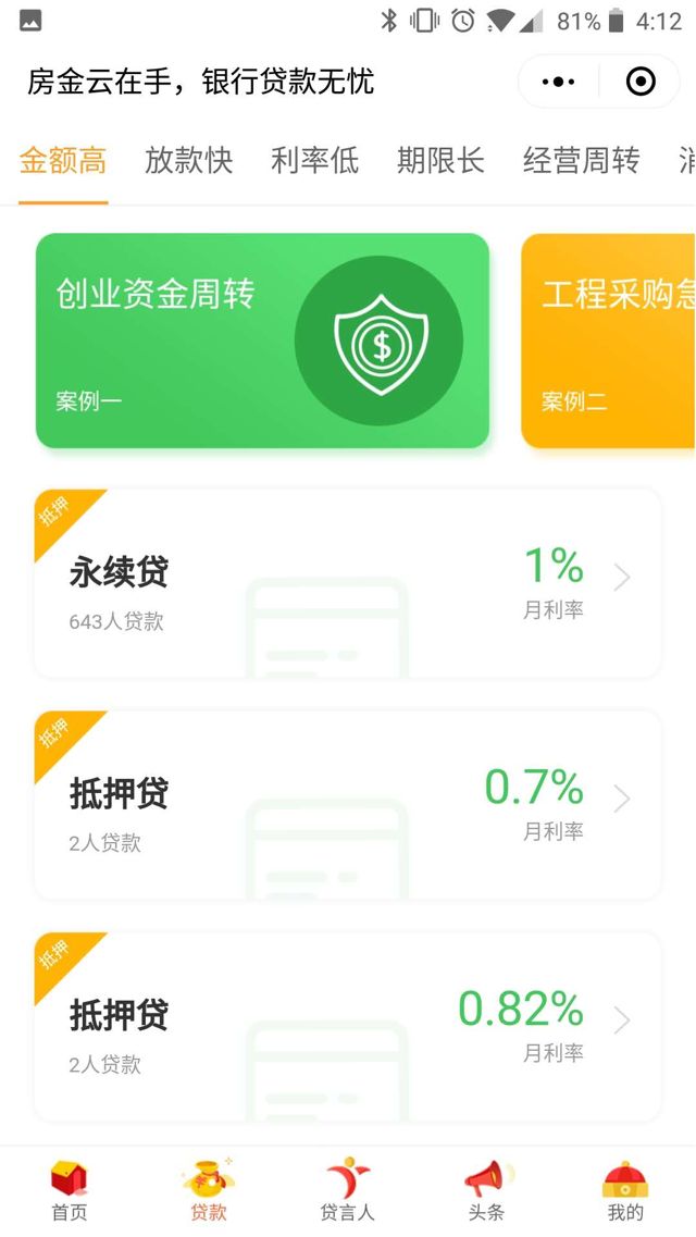 掃碼體驗小程序房金云是一款為用戶提供的科技金融服務工具,通過房金云即可享受專業、安全、快速、簡單、便捷的科技金融服務小程序類別:金融開發者:深圳房金所金融服務股份有限公司小程序截圖