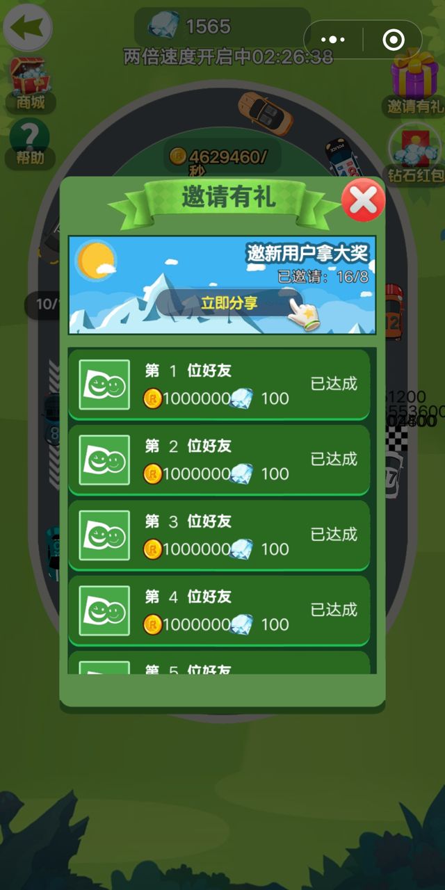 掃碼體驗小程序酷跑賽車是一款合成賽車小游戲,在這里你可以獲得各種酷炫的跑車,是時候邀請好友一起,進入這個酷炫的賽車世界,體驗賽車的樂趣,享受賺錢的快感了小程序類別:游戲開發者:酷跑賽車小程序截圖