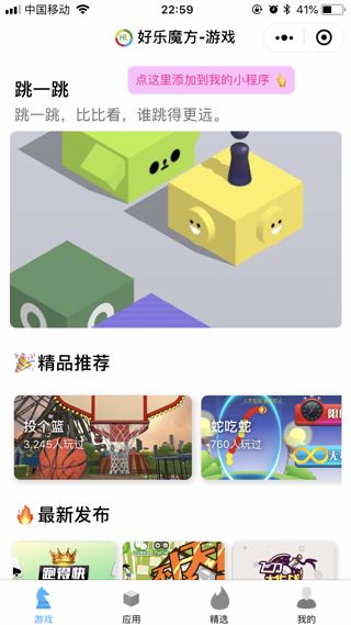 掃碼體驗小程序好樂魔方海量精品小游戲小程序集合小程序類別:游戲開發者:江西凌游互動科技有限公司小程序截圖