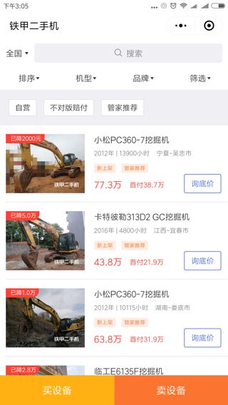 掃碼體驗小程序鐵甲二手機二手工程機械交易平臺小程序類別:商業服務開發者:北京信達眾聯科技有限公司小程序截圖