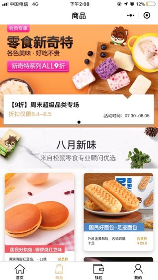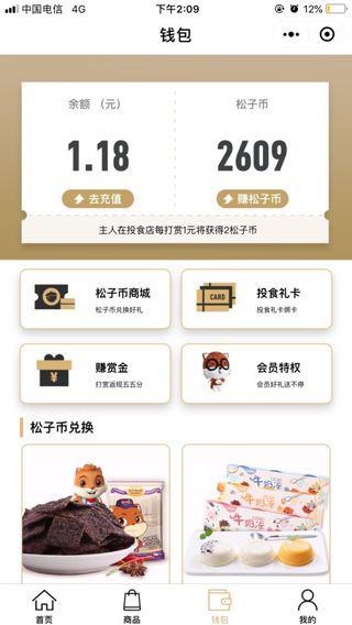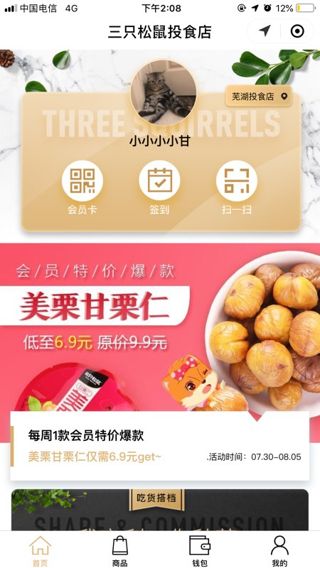 三只松鼠投食店小程序,是一款為主人提供會員服務的小程序,主要是為了方便主人無論在何時何地,都可以快速了解投食店活動信息、促銷信息及新品首發,除此以外還可以通過分享美味的零食給朋友,從而獲取獎勵。主要功能包含會員卡、新品首發、儲值消費、積分商城和一些有趣的任務。立即開啟松鼠之旅,盡享好禮! 首頁+會員卡: 首頁包含會員卡、官方活動、門店優惠、分享任務四大功能模塊 更簡潔的卡片設計,信息分層更顯著 商品 不定期上線一些新品零食、產品文章介紹 錢包 錢包頁面包含松子幣(積分)、余額(儲值)、豐富的積分換購產品、未來將增加更多的積分小游戲。 我的 主人可在我的界面了解到個人信息、松子幣、余額、卡包等信息。