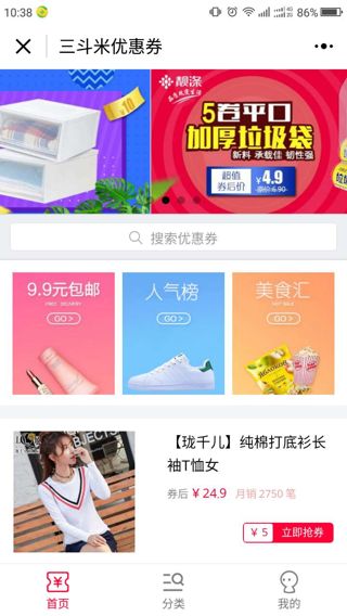 掃碼體驗小程序三斗米優(yōu)惠券專業(yè)提供淘寶/天貓優(yōu)惠券。小程序類別:網(wǎng)絡(luò)購物開發(fā)者:何本軍小程序截圖