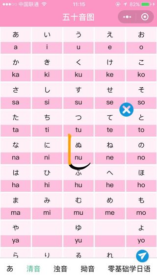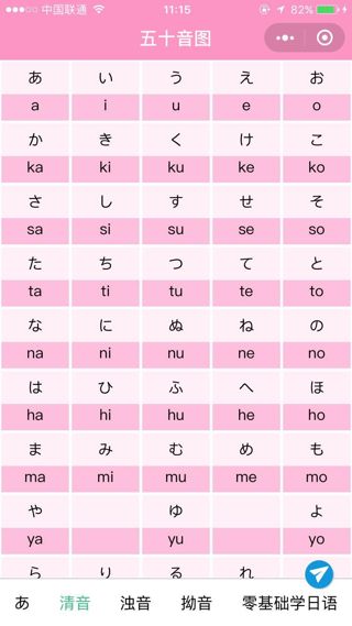 掃碼體驗小程序五十音圖發音圖譜正宗日語五十音發音入門小程序類別:教育開發者:湖南言趣網絡科技有限公司小程序截圖