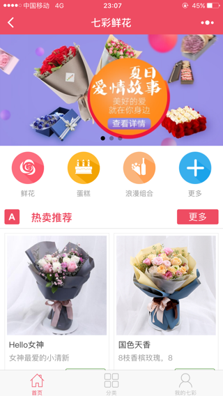 掃碼體驗小程序七彩鮮花同城速遞,提供全國范圍內的鮮花預訂及配送服務,范圍覆蓋全國市縣鄉鎮,預訂后1-3小時即可送花上門!小程序類別:網絡購物小程序截圖