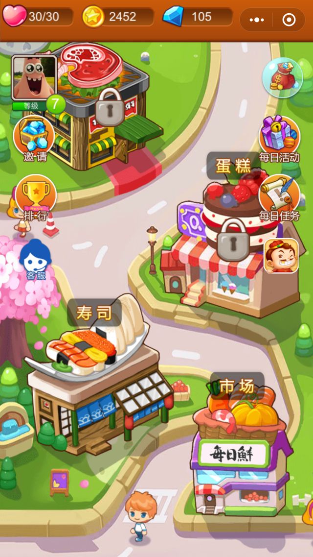 《快樂美食世界》是一款美食烹飪為題材的養成游戲。有日式料理到美式牛排,豐富的場景任您選擇,烹飪各地美食!小程序類別:游戲開發者:武漢玄石小程序截圖