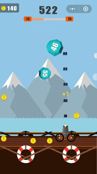 掃碼體驗小程序人間大炮天天物理彈射消除打磚塊人間大炮一級準備,人間大炮二級準備,準備發射!!控制大炮射擊上方的石塊,并小心躲避掉落的石塊。擊碎后獲得的金幣可以升級人間大炮。小程序類別:游戲開發者:[email protected]小程序截圖