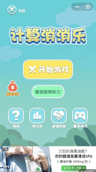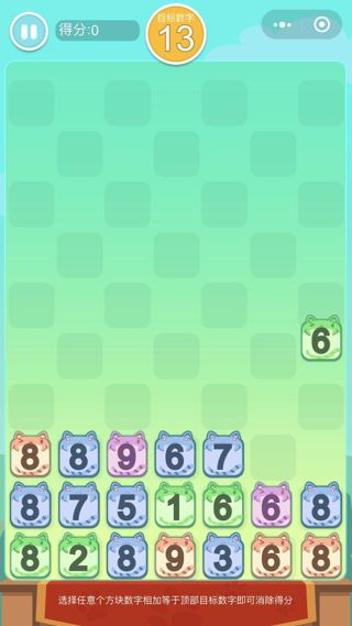掃碼體驗(yàn)小程序消消消方塊《消消消方塊》是一款休閑益智的小游戲,玩家根據(jù)目標(biāo)數(shù)值,選擇1個或者多個方塊,只要所選方塊上的數(shù)字等于目標(biāo)數(shù)值即可消除方塊并得分。每周參加現(xiàn)金挑戰(zhàn)賽還有機(jī)會獲得現(xiàn)金紅包哦!小程序類別:游戲小程序截圖