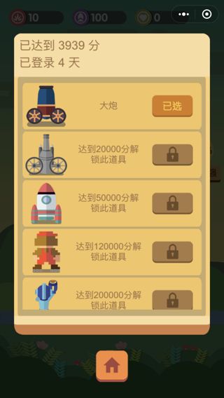 掃碼體驗小程序瘋狂炮擊沒有一炮打不掉的煩惱,如果有,那就兩炮。一款休閑射擊減壓類游戲,左右移動大炮射擊能躲避障礙物并得分。小程序類別:游戲開發者:來玩游戲小程序截圖
