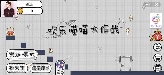 掃碼體驗小程序歡樂喵喵大作戰多人瘋狂奪寶,事故連連,刺激不斷,人性的崩塌,貓性的綻放!小程序類別:游戲開發者:個人小程序截圖