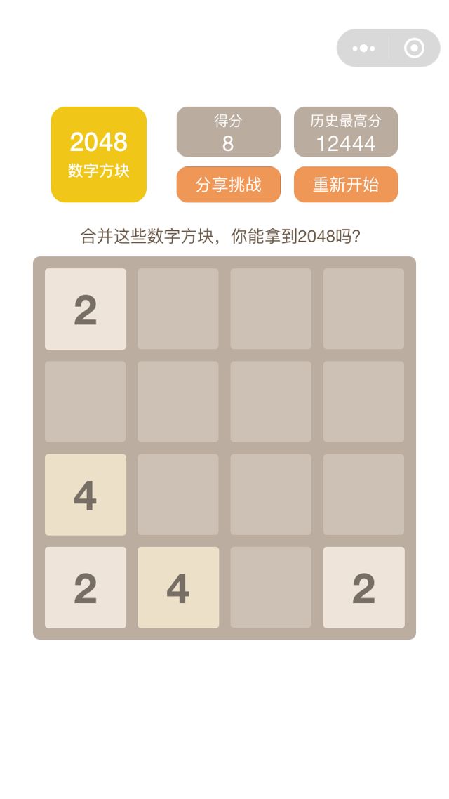 掃碼體驗小程序數字方塊2048挑戰休閑益智單機小游戲,最好玩的方塊游戲!小程序類別:游戲開發者:廈門市會牛科技有限公司小程序截圖