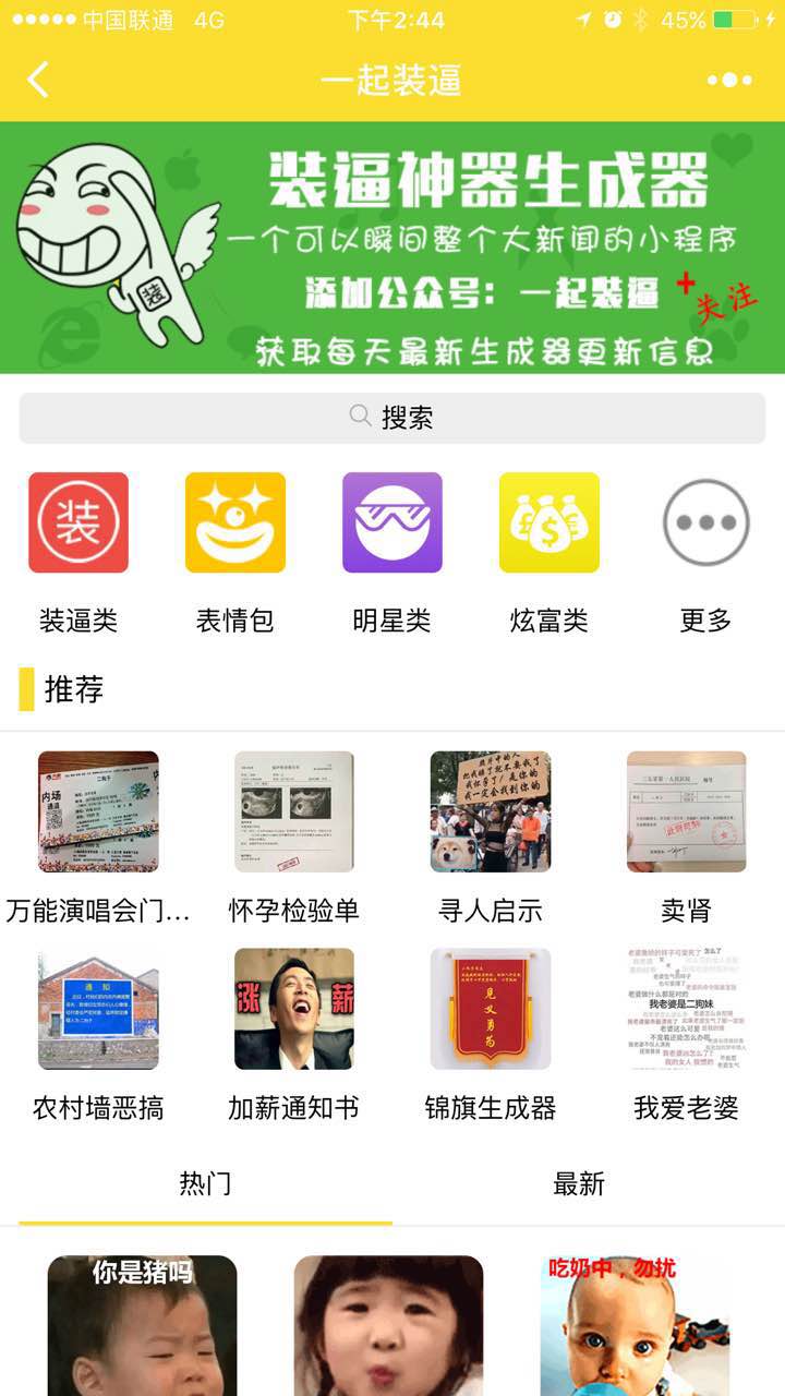 掃碼體驗小程序一起裝逼一鍵生成各種裝逼,整人圖片,分分鐘讓你在朋友圈搞個大新聞~還有各種豐富表情哦小程序類別:圖片攝影開發(fā)者:無錫烏托邦文化傳媒有限公司小程序截圖