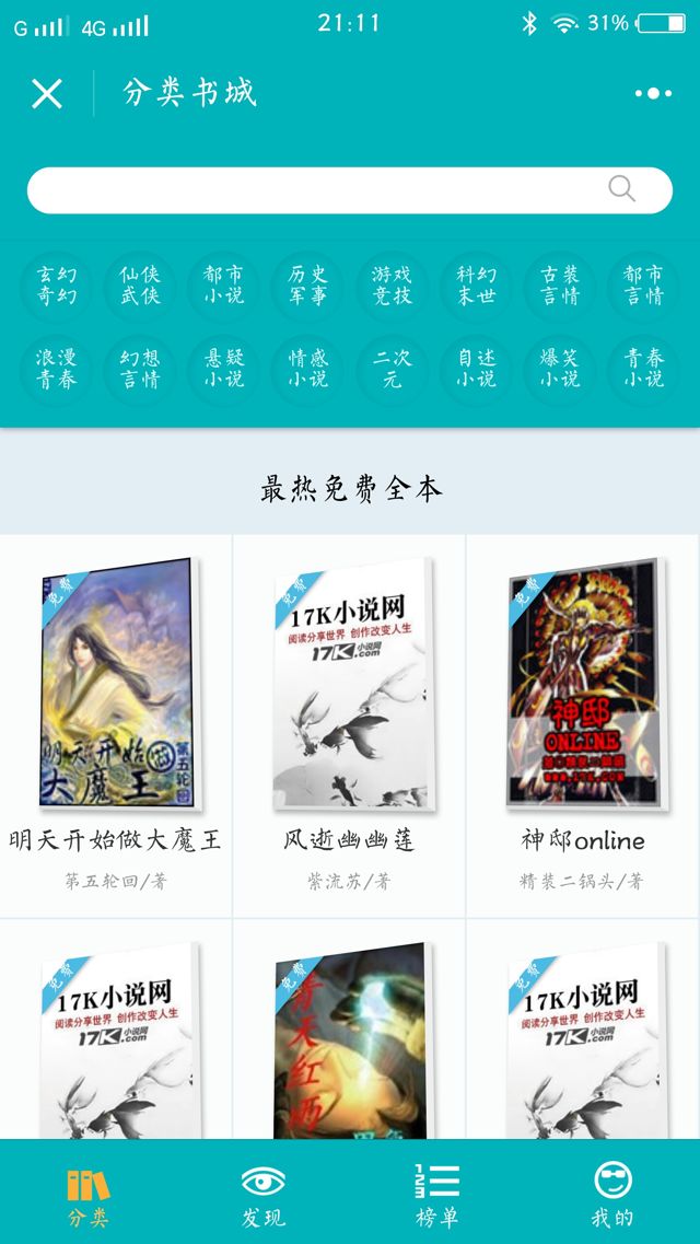 掃碼體驗小程序一起看免費小說是中文在線旗下17K小說網提供的小說在線閱讀服務, 80萬原創小說限時免費放送, 2000知名作家正版授權, 500家出版機構提供海量小說資源. 如果你喜歡請轉發給其它讀者朋友們, 同時讀者們提出意見和反饋, 謝謝.小程序類別:閱讀小程序截圖