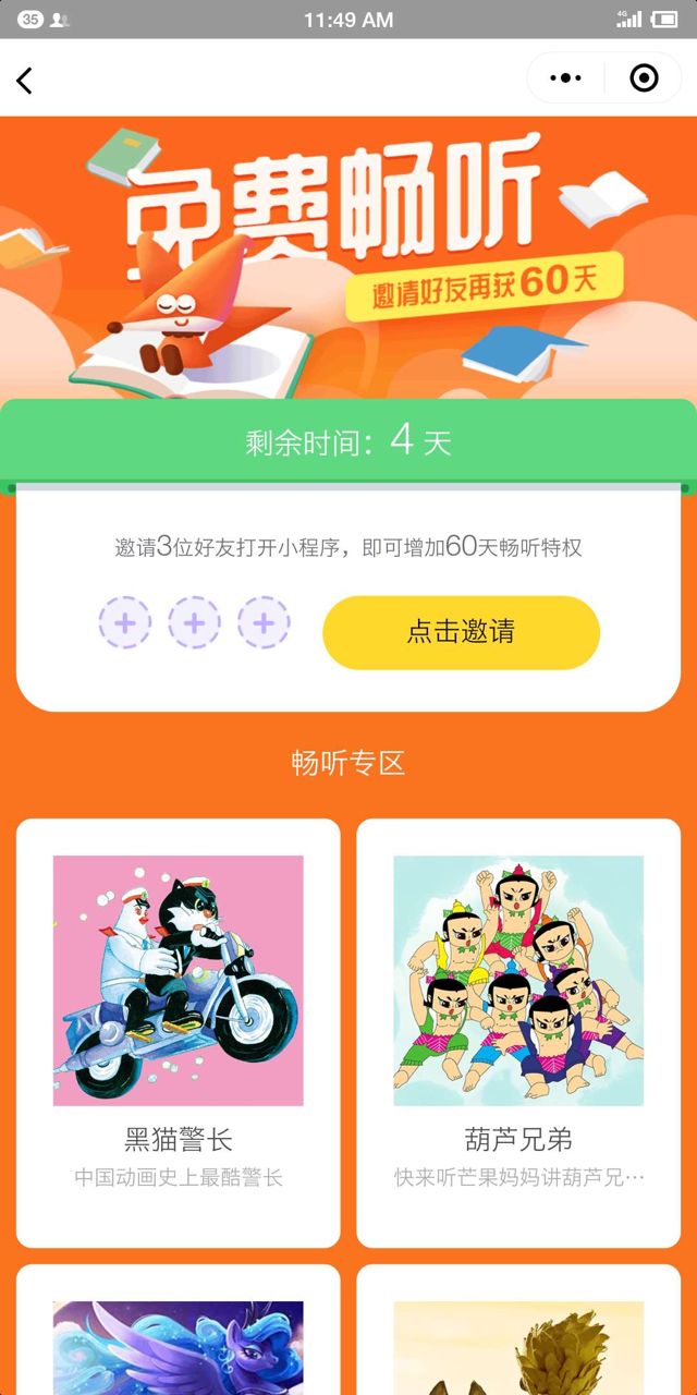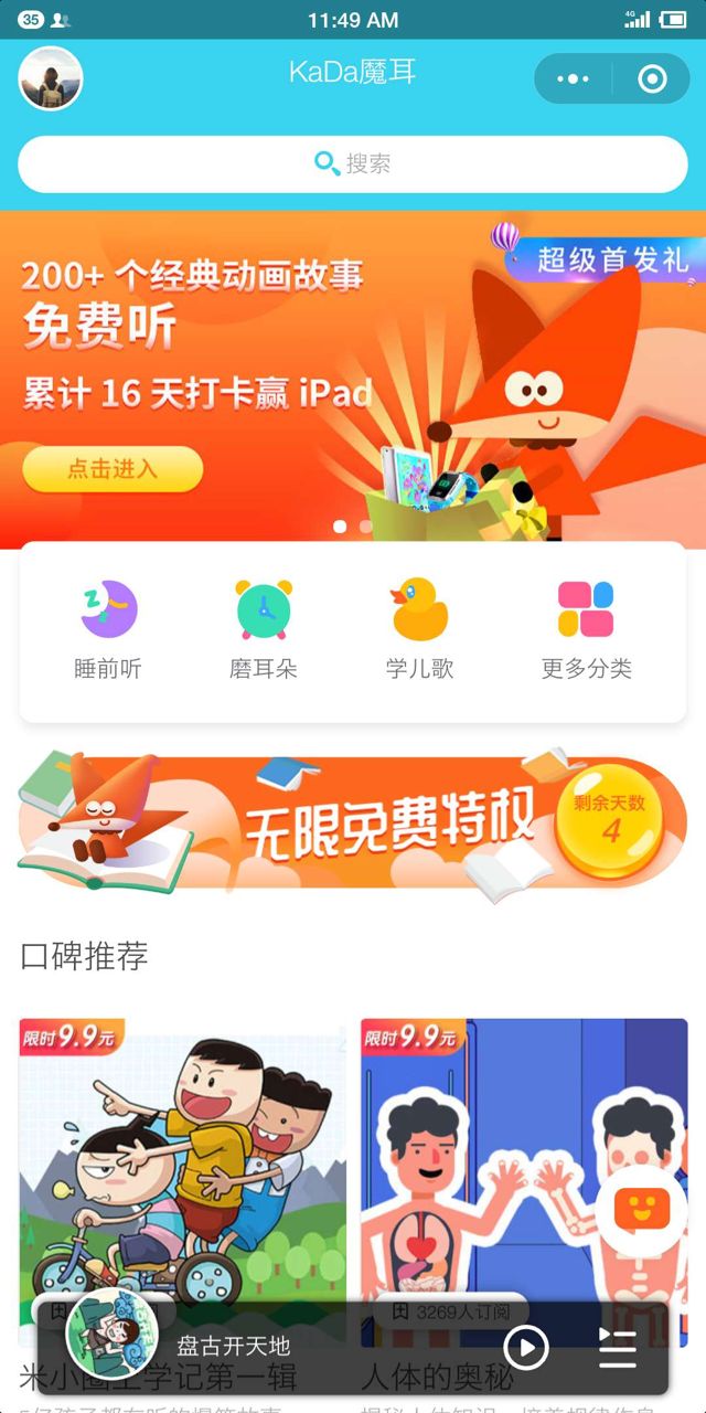 掃碼體驗小程序為0-6歲孩子準備的哄睡叫早神器,讓故事伴隨孩子入眠,讓兒歌喚醒孩子起床,輕松做好學齡前智育開發。睡前故事、國學科普、童話分類:網絡購物標簽:教育故事兒歌學習開發者杭州紅花朵朵網絡技術有限公司小程序截圖
