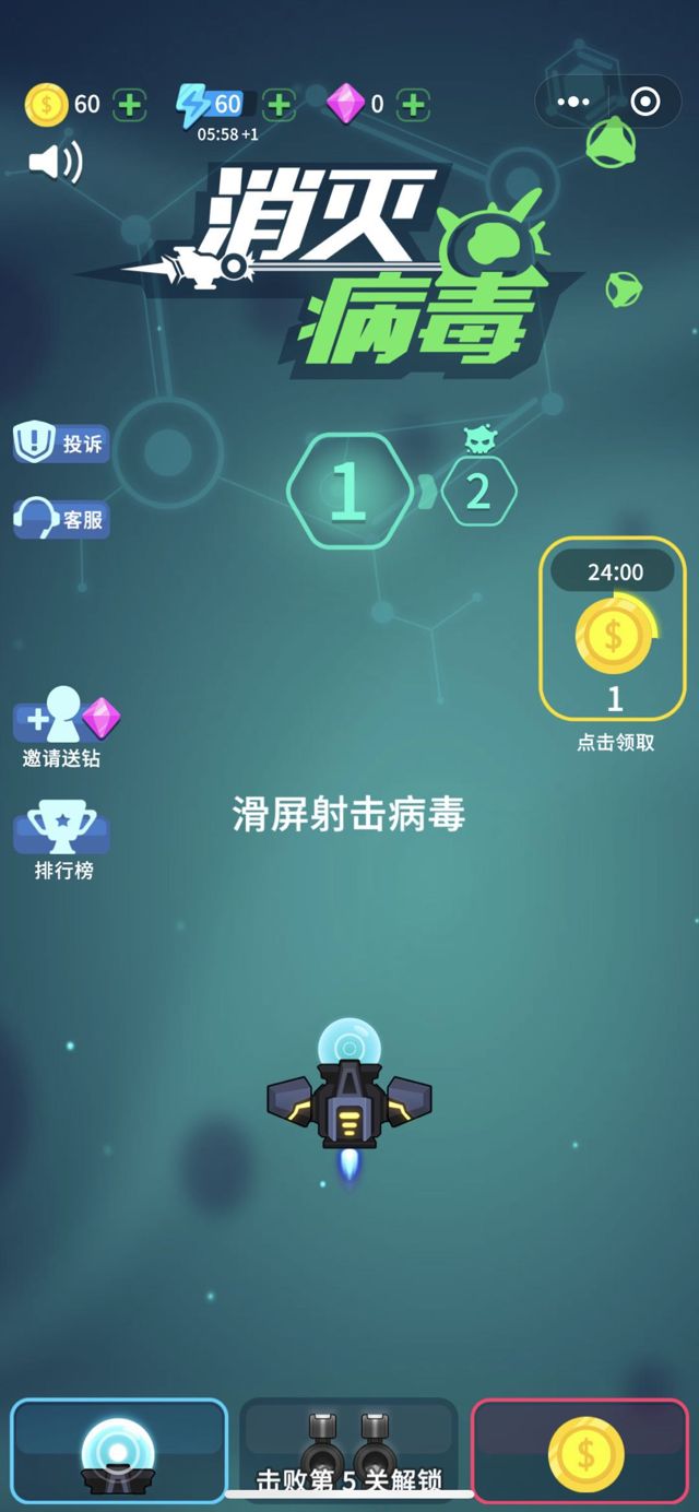 掃碼體驗小程序消滅病毒,躲避病毒,升級武器,消滅病毒!分類:游戲標簽:射擊 小游戲 休閑小程序截圖