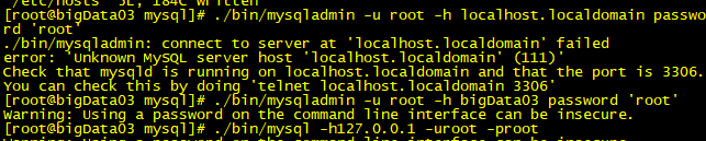 ./bin/mysqladmin -u root -h localhost.localdomain password 'root'