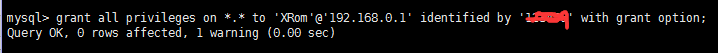 增加一個用戶給予訪問權限:grant all privileges on *.* to 'root'@'ip地址' identified by '密碼' with grant option; //可將ip改為%%,表示開啟所有的