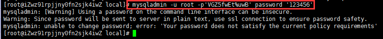 這里更改密碼出了問題,更改失敗,這是因為密碼太過簡單的原因。有兩個接解決方法: