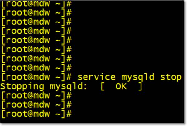 5、如何停止mysql的服務呢。方法也很簡單,使用命令:service mysqld stop命令即可。